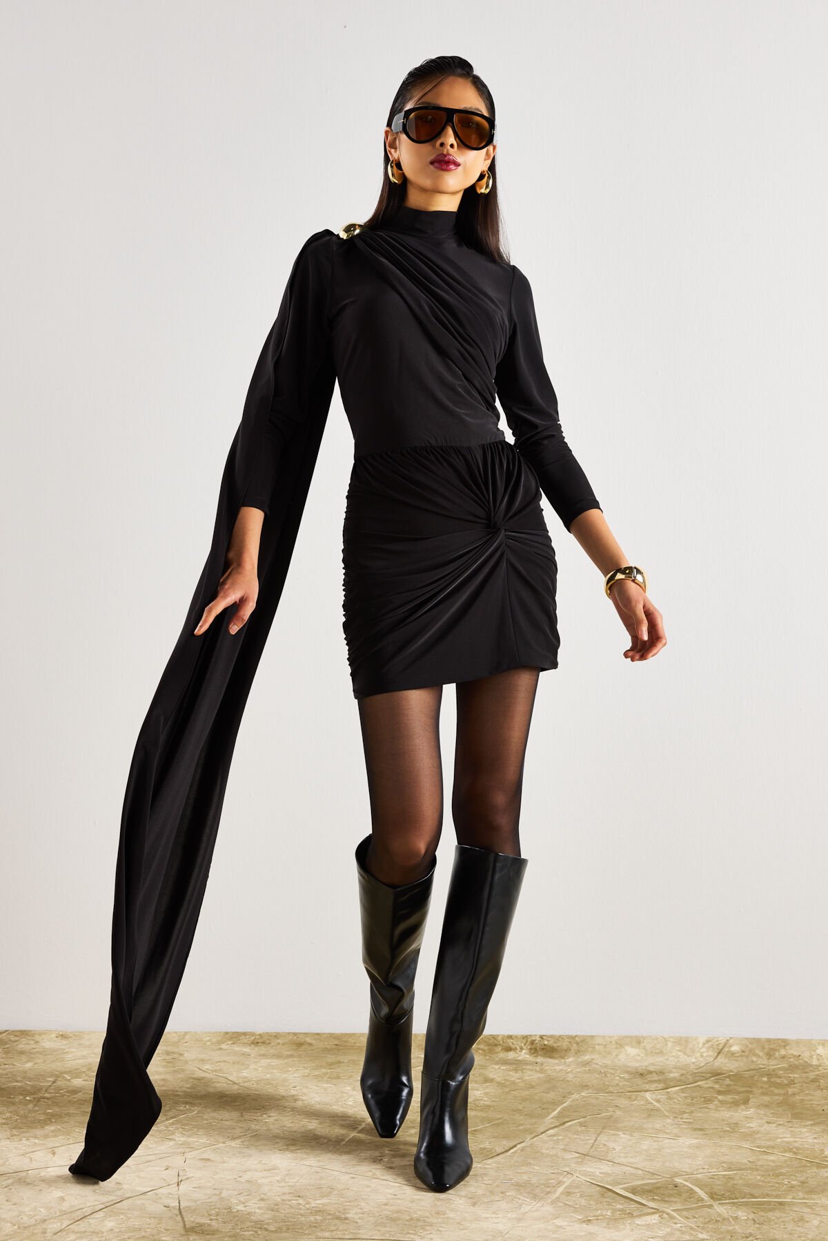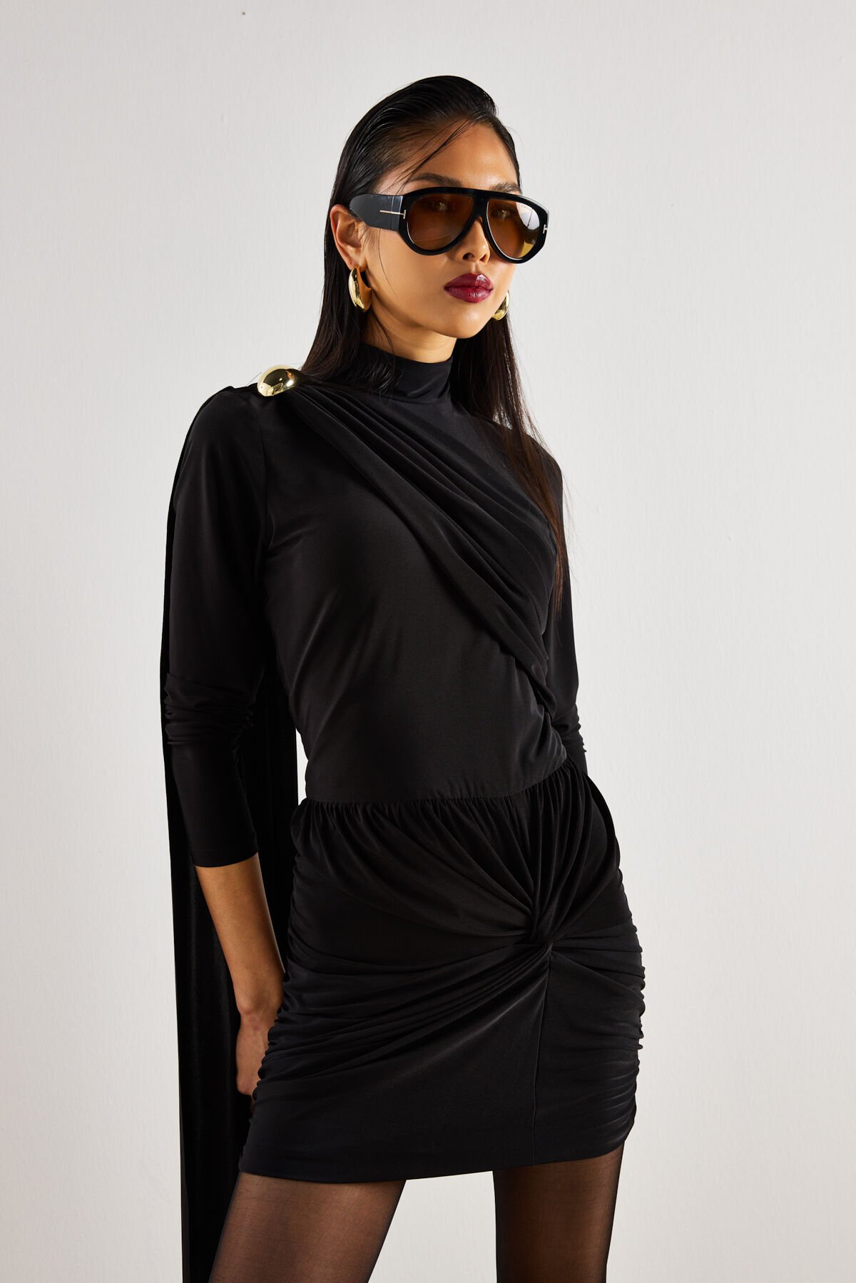 Jersey Draped Mini Dress In Black